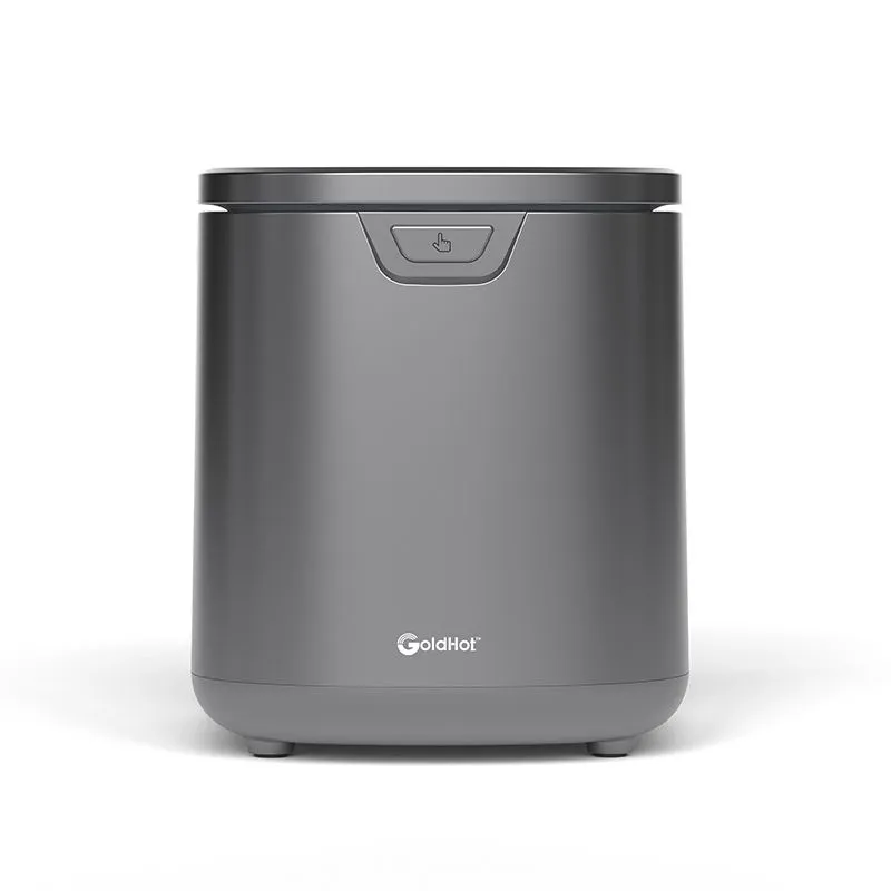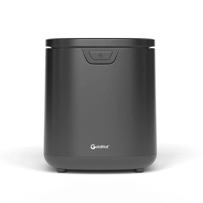 Press one button to begin grinding and drying. The GoldHot composter handles everything automatically.